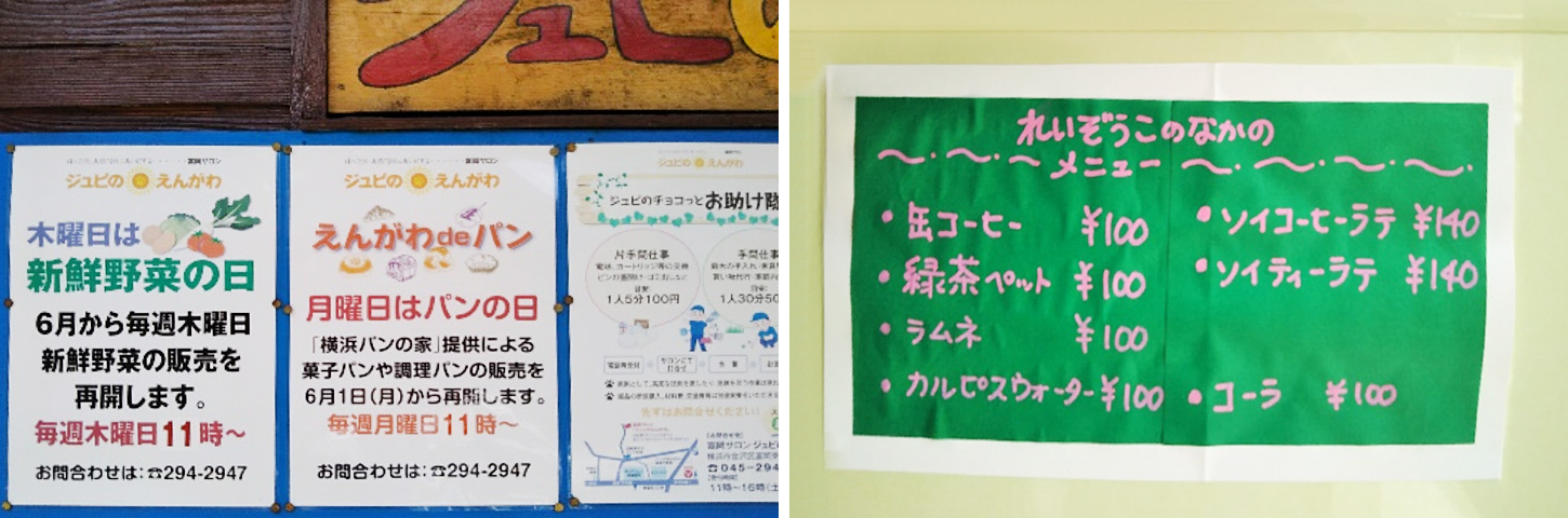 毎週月曜が「パンの日」。パンは高橋さんが近くの「横浜パンの家」から仕入れ販売する。一日で70個くらいを仕入れ、その日のうちに捌く。注文も受け、配達も行っている。毎週木曜日が「新鮮野菜の日」。野菜を農家から仕入れ、販売する。氷取沢(磯子区)の農家3軒から野菜を仕入れ、重量野菜は近くの南部市場から仕入れている。これも高橋さんの担当だ。パンも野菜も余ることもあるが、その時はスタッフのみんなが快く協力してくれるということだ。
