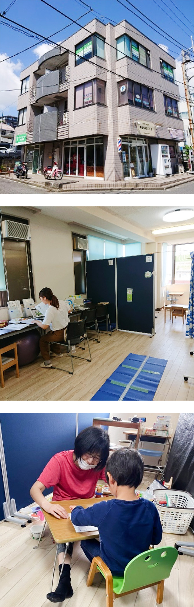 京急長沢駅から徒歩1~2分、駅のホームからも見下ろせる場所に児童発達支援事業・放課後等デイサービス施設「トータスキッズ」がある。知的障害と発達障害の子どもと家族支援として、個別による専門性の高い未就学児の早期療育と小学校から高校まで途切れることのない支援で自立と就労に向けた力を育むことを目的に、2019年4月よりNPO法人ファミリアの事業の一環として開所した。理事長の高橋嘉誉さんは自らの発達障害の長女の子育て経験と学びを還元する場として2010年から個別支援による療育を開始。現在では6名の支援スタッフが通年を通し日々1時間の枠で個別支援に対応する。子供への効果的な支援環境を確保するため、保護者のサポートや連携を常に大切にしている。ビルの3階にある施設のフロアは、3つの個別支援スペース、職員室、個別支援にも対応できるフリースペースとパーテーションで仕切られている。訪問した日の午前中は2組の園児の個別支援中で、3畳ほどのブースから支援者のテンポ良い元気な声が聞こえてきた。